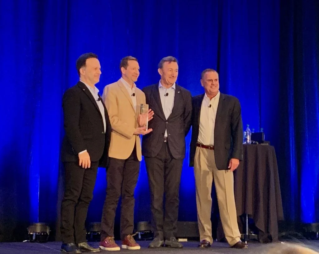 Gian Paolo Bassi, SOLIDWORKS CEO, and Bernard Charles, Vice Chairman and CEO of Dassault Systèmes, came on stage and congratulated the recipient of DELMIA WORKS Customer of the Year, Phoenix Plastics, a sixth generation family company. Alby Miller, President of Phoenix Plastics, accepted the award.