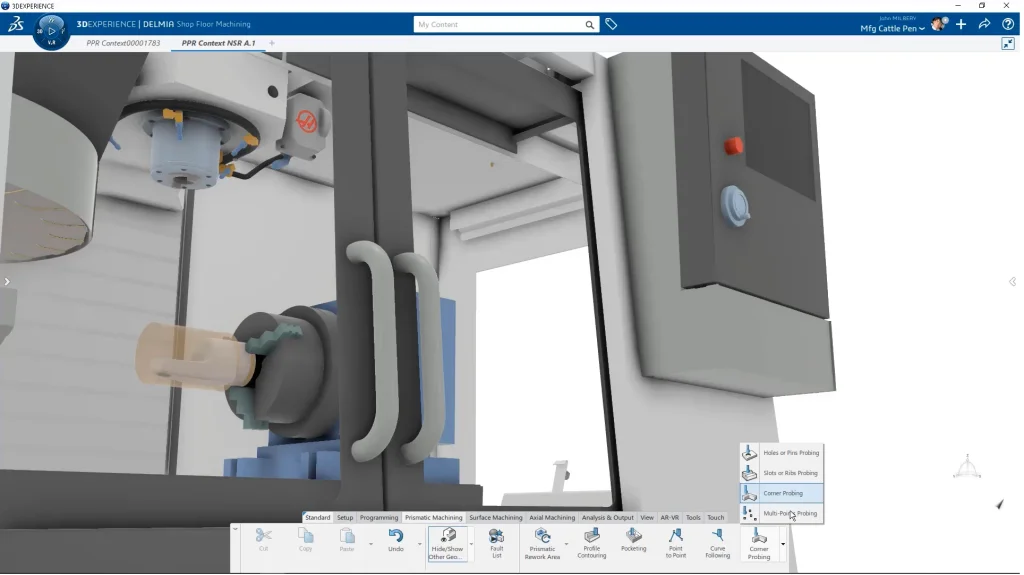 NC Shop Floor Programmer provides full 3-axis machining capabilities, 4- and 5-axis pre-position, and wire EDM into a single role. Toolpath simulation and machine kinematics are standard capabilities included in all DELMIA machining roles.
