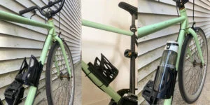 There was one thing missing from my bike, however, and that was a place to keep my water bottle. I was getting a little fed up with not bringing one, or having to carabineer a bottle to my handlebars. So I took it upon myself to make my own water bottle bike mount