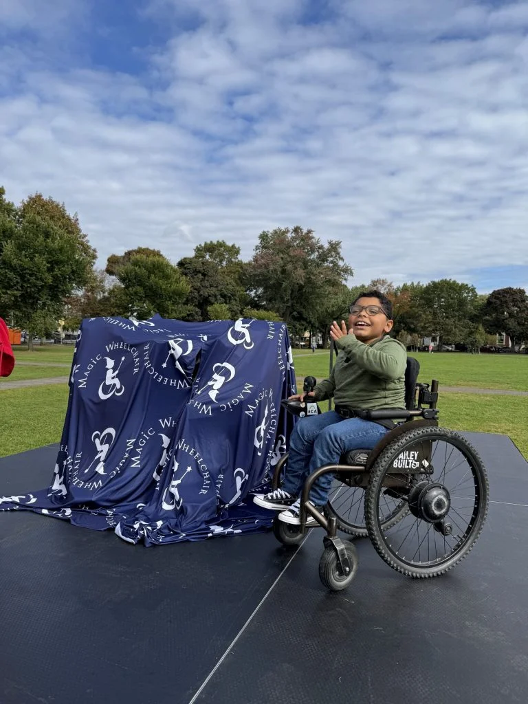 Adrian is a star in the making. He wanted everyone and anyone to see his Halloween costume, provided by the SOLIDWORKS Magic Wheelchair build team. So, at 11 AM on a beautiful October day, his loved ones, the build team, a film crew from NBC Boston, and people strolling the park gathered in the Salem Common to see the big costume reveal.