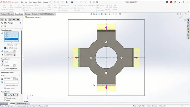 Previously, when creating edge flanges, you could define their length based on existing solid geometry. Now, SOLIDWORKS is expanding this capability to offer even greater flexibility by allowing you to use sketch vertices to define the extent of your edge flanges. This offers users more flexibility when building in design intent with their sheet metal models.