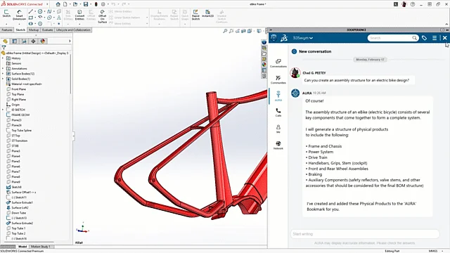 Whether you are a new user struggling with basic feature workflows or a seasoned expert looking for best practice recommendations, AURA aims to be your go-to resource. This potential integration promises to allow users to ask questions about various SOLIDWORKS functionalities and receive immediate, context-sensitive answers, pulling from user forums, knowledge base and help files. AURA will be capable of offering recommendations on optimal workflows and guiding you through different stages of your design, from the initial conceptualization to the final release of your product.