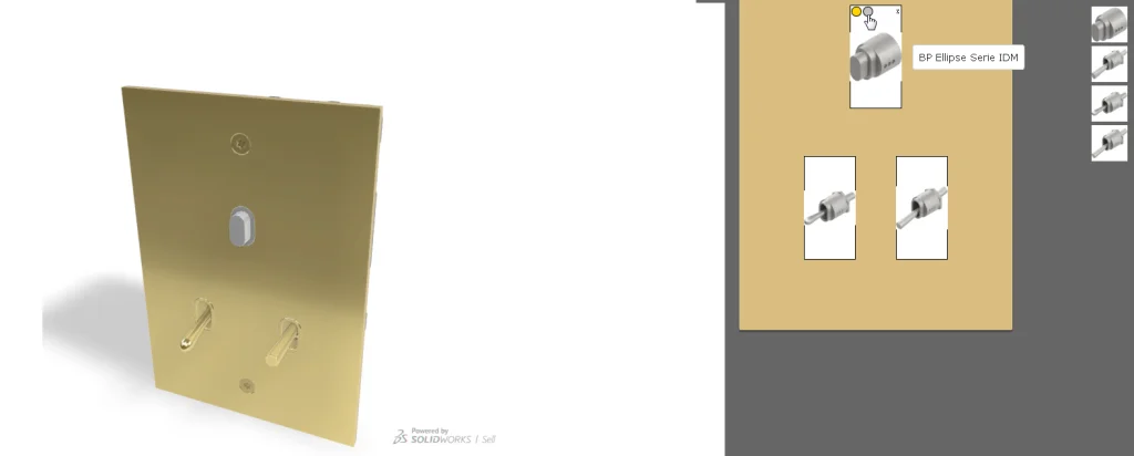 Please expand the panel on the right. Then from the drop-down menus, you can select the plate sizes, trims, materials, and various eligible components. The 3D models update accordingly as you make selections.