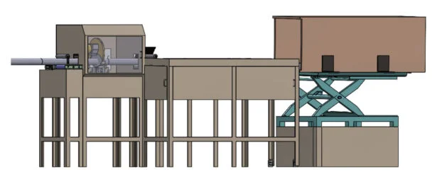This assembly requires precise machine timing to ensure that the saw keeps up with the rate of extrusion and cuts the pipes to the correct lengths. The pipes must also be collected and stacked into boxes by an automated system.