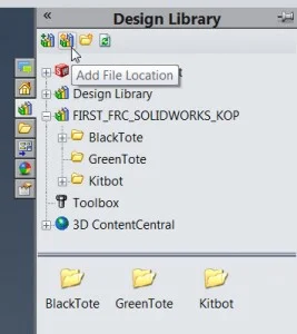 - Now the FIRST_FRC_SOLIDWORKS_KOP folder is displayed in the Design Library