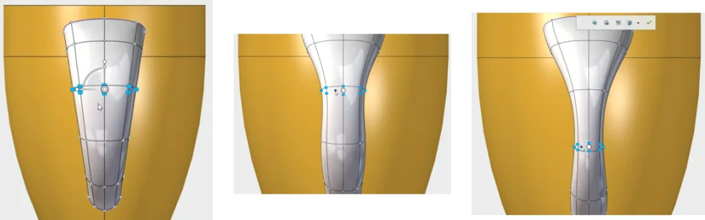 And by turning on Symmetry, any edit or manipulation you perform on the subdivision surface will be mirrored to the other side, ensuring that your design is symmetric and accurate about a plane of symmetry.