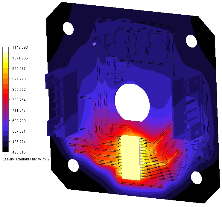 Image 9: Leaving Radiant Flux plot on a Stepper Motor Driver PCB model with copper traces.