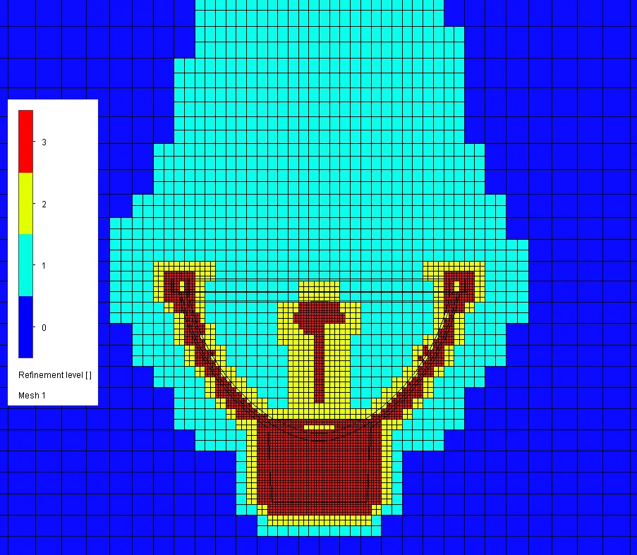 Image 15: Mesh refinement levels from the base “parent” level 0, cut one level down to capture rising air currents, finally to level 3 to capture the bulb and reflector geometries.