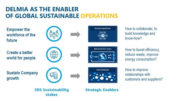 Gosse discussed how DELMIA is a global enabler of sustainable operations that can help empower the workforce of the future, create a better world for people, and sustain company growth.