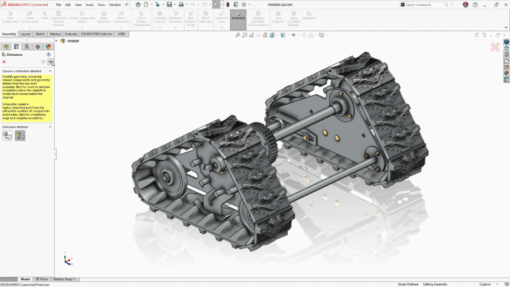 Before sharing a proprietary design model, you can create and save “Defeaturing Rules.” These are logical definitions based on properties like mass, build in-house or buy off-the-shelf. And, of course, save that work to a ‘Defeatured’ configuration within the same assembly.