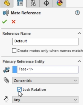 When creating Mate References in 2024, a new option to automatically lock rotation for concentric mates has been introduced: