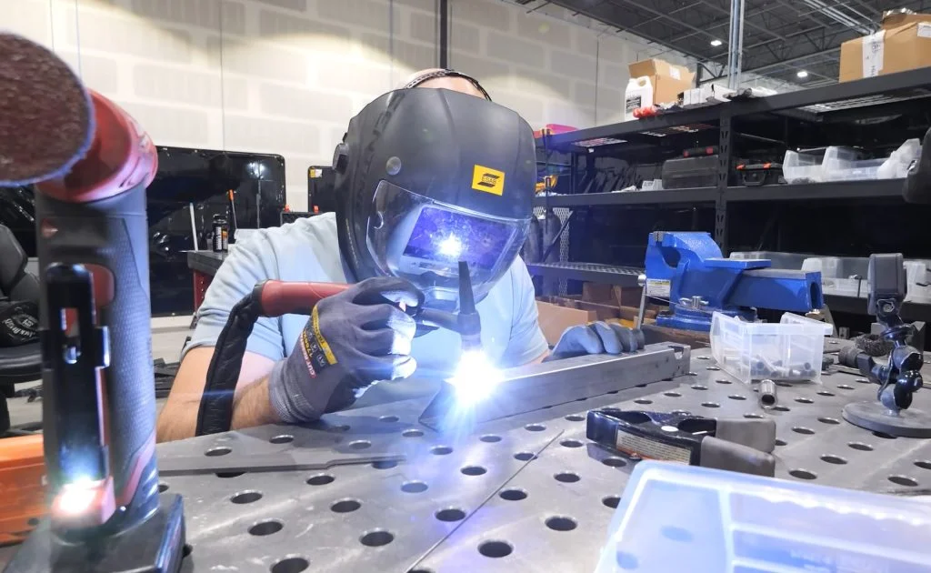 Next, a CNC tube bender gives the frame its structure before everything moves to the welding stage. This is where Sparky the cobot comes in. Unlike traditional industrial robots, “cobots” are designed to work alongside humans. Sparky doesn’t think for himself, but once programmed, he can weld frame after frame with perfect consistency.
