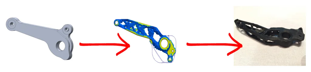 Once you have your topology results, what do you do with them? For those with access to a 3D printer, the result from a topology study can be exported as a smoothened mesh. This mesh can be sent directly to a 3D printer for manufacturing, but further validation of your component based upon the printer’s materials is essential.