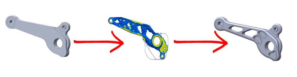 But that is not to say that the topology study has no use for traditional manufacturing processes. The results from a topology study can be overlaid onto the original geometry and used as a guide to create cutouts and pockets for traditional CAM solutions.