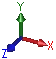 Select Axis – Click on an axis to look along that axis. This is equivalent to selecting a standard orthogonal view, but without making the mental mapping in your head as to which view is which related to your model. Note that if you are already looking normal to one of the orthogonal views, you can reverse the direction (for instance from front view to back view or vice versa) by clicking the axis that is currently pointing at or away from you (for instance, the Z axis on the triad as shown in the two orientations below).