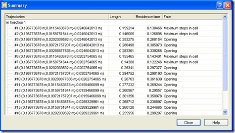 and you will get a table of results for each particle injected into the inlet.