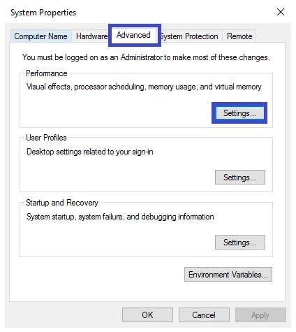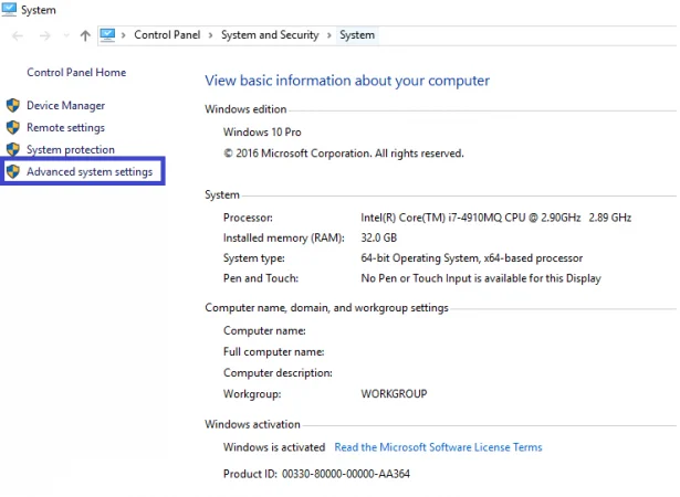 1. Go to Control Panel> System > Advanced System Settings