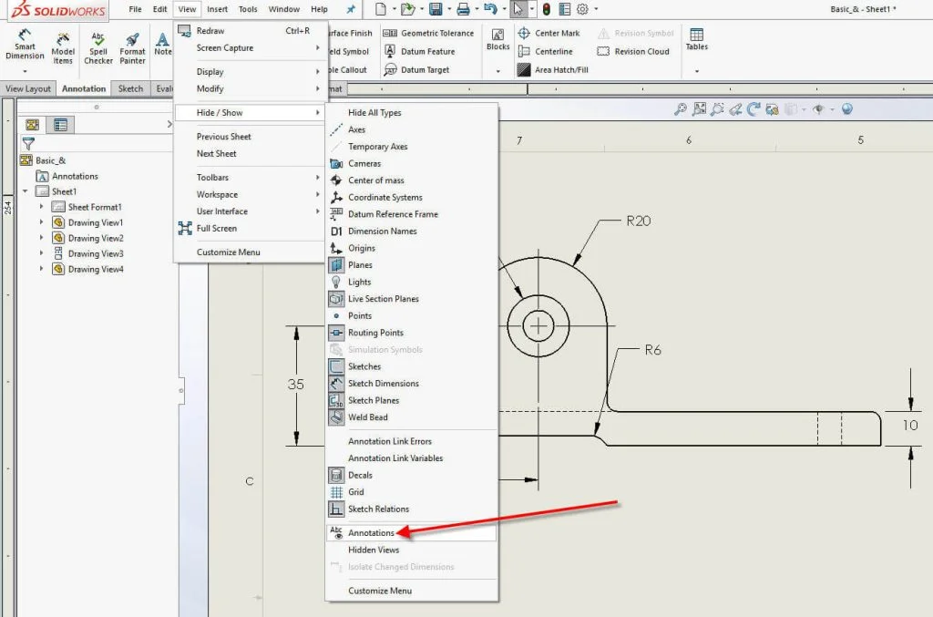 1. How to Hide/Show Dimensions in a SOLIDWORKS Drawing