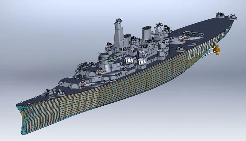 Last May we looked at SolidWorks user Donn McKinney’s 30+ year dream to recreate a fully operational replica of the U.S.S. Missouri. (On a smaller scale, of course.)  Donn is part of a team engaged in producing operational replicas of the Iowa Class Battleships with the goal to put these operational ships on display for the education and enjoyment of the general public, in various locales.