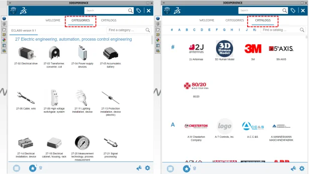 You can search component based on CATEGORIES like mechanical, electrical automotive etc. or CATALOGS of suppliers like 3M, 2J antennas etc. You can also search the component by its name as well.
