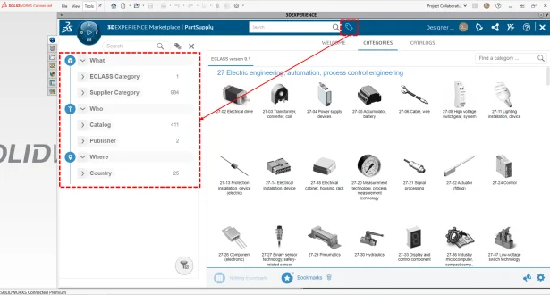Steps to use PartSupply of 3DEXPERIENCE Marketplace on SOLIDWORKS Connected: