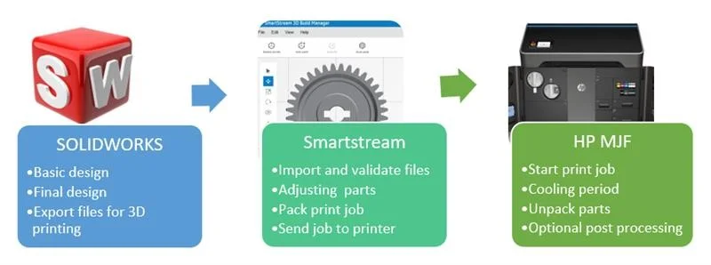 Like many of you, I love the idea of 3D printing. I used to be skeptical of its large-scale applications and ease of use. Well…that did not last long! The journey today will outline my route from concept to finished production parts, highlighting the ease of setup using Smartstream for the HP Multi Jet Fusion printers. On this trip, I will bring along SOLIDWORKS, my trusted parametric 3D computer aided design software used by millions of users around the world. My background as a CAD designer, instructor and troubleshooter creates a firm foundation for the understanding of how the 3D world operates. For what I don’t know, there are countless forums and user groups that can help me learn and improve.