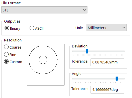 Binary STL is sufficient, as ASCII brings unnecessary information and increases the file size. For VRML, version 97 is the best option, as Version 1 is older and does not work with some slicing software.