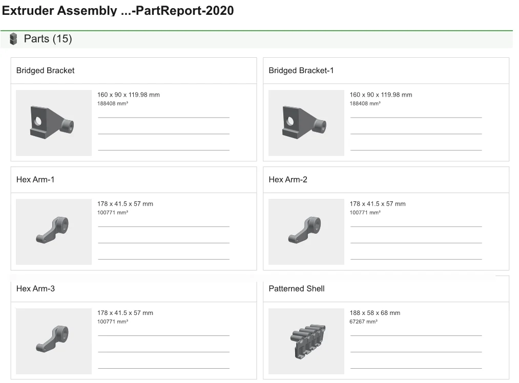 For administrative purposes, I can also run a report and see my parts’ dimensions and other necessary information. This is in PDF format and easy to print out.