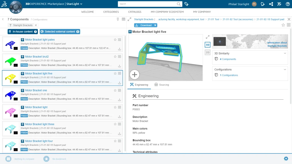 PartSupply on the 3DEXPERIENCE® Marketplace provides a comprehensive and intelligent catalog of 3D components. Within a single environment, you can choose the most suitable parts for your projects from millions of qualified component configurations available from over 1,000 service providers.