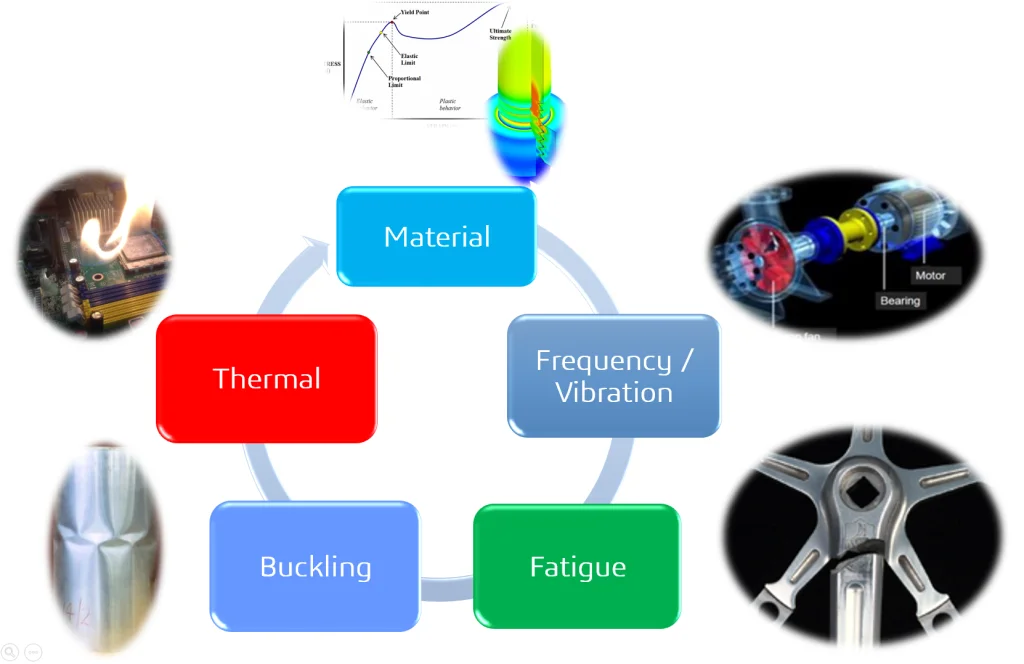 Strength test is addressing just one of the many types of mechanical failure modes. Under real-world conditions, a product may encounter loads that can cause one or more of the following types of common structural failure: 1. Material failure, 2. Frequency /vibration failure, 4. Fatigue failure, 4. Buckling failure and 5. Thermal failure.