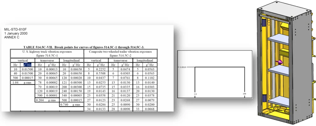 Vibration analysis is an extension of frequency analysis and provides us with more detailed data such as stress, displacement, strains, velocities and accelerations. Specific guidelines for doing vibration tests and simulations can be found in applicable standards in every industry. Below are some examples:
