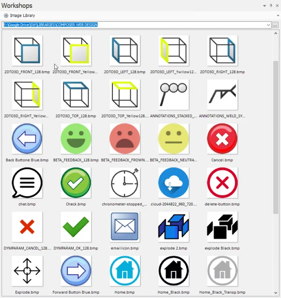 Pro tip: Grab common icons to compliment what Composer comes with in the installation. Home, back, forward, different views, anything that might add to the navigation can all be done in 2D image format and added to your image library from the Workshops.