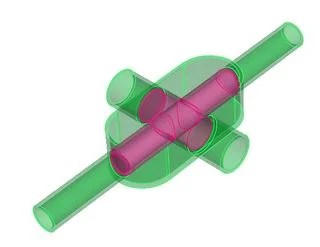 5. Regions may be included or excluded from the final result.  In this example, select the regions of pipe that fall inside of junction box using two methods: