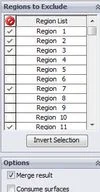 4. A list of intersection regions is quickly generated in the Regions to Exclude box in the PropertyManager.