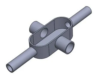 This is a junction box.  The goal is to add four connection ports for the conduit that currently intersects the body of the junction box.