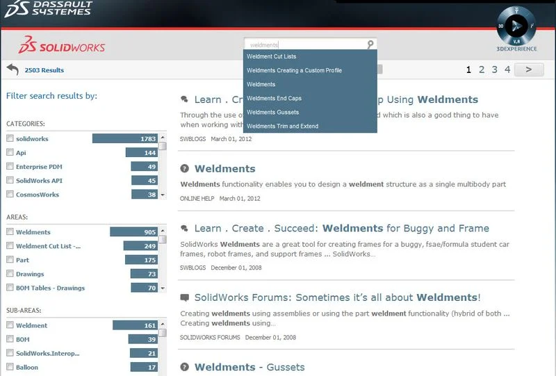 If you’re in need of a quick answer to a question, My.SolidWorks provides immediate access to forum posts, online help, YouTube videos, blog posts and more. You can also search all of those sources for answers with a single click.  All of the relevant results are delivered on one page, making it much easier to get in, find an answer, and get back to your design.