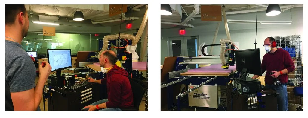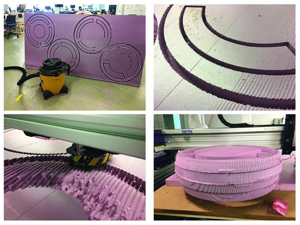 Last Saturday the actual build officially began, with team members coming into the 3DEXPEREINCE Lab and using the CNC machine to cut out foam for the costume’s tires.