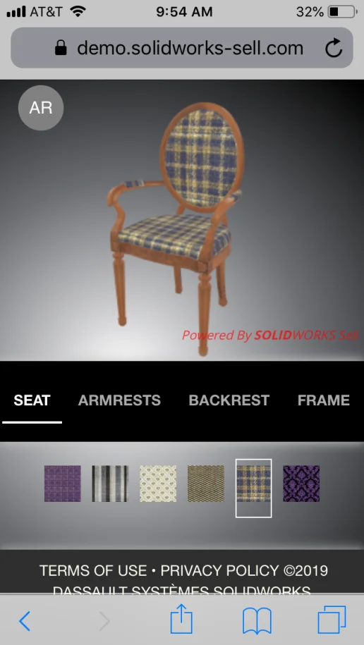 Figure 1. A 3D Chair Online Configurator powered by SOLIDWORKS Sell.