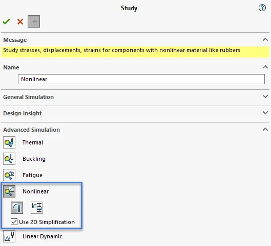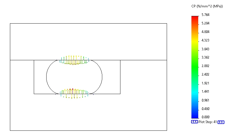 Once 2D profile is selected, SOLIDWORKS Simulation will automatically create it for the analysis. Here, a translation is applied to the edge of the top plate to ensure both plates coincide to compress the O-ring.