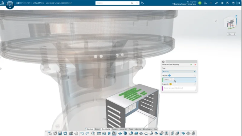 The new Point or Curve mapping feature enables you to map sketches, edges, curves, or points to a flat pattern. This is useful if there is an engraving, or construction element in the folded sheet metal design, because it easily enables you to communicate those types of detail on a flat pattern. This key flat pattern information can be shared with stakeholders though the new DXF export settings to include all mapped entities.