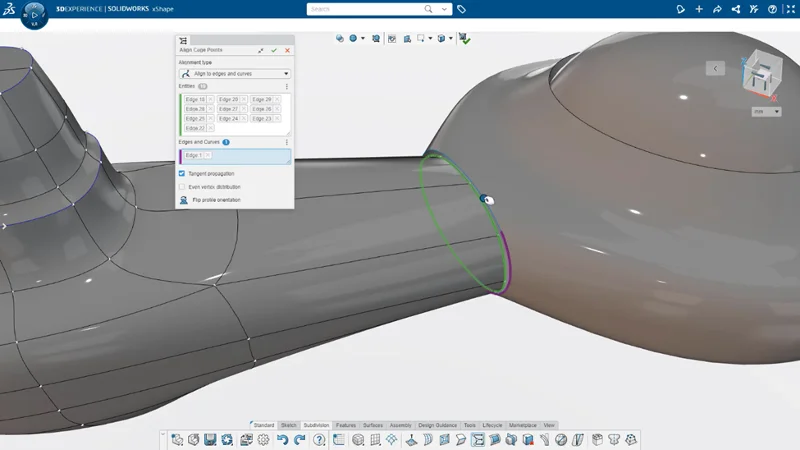 You can now distribute vertices equally when aligning them to edges and curves. This enables you to create a smooth Sub-D mesh when aligning cage points rather than maintaining the pre-existing distribution between points.