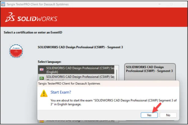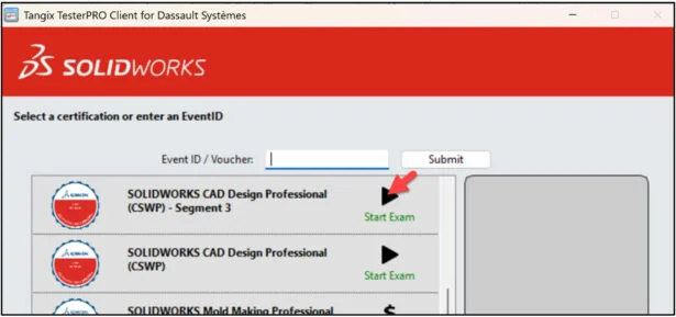 Select SOLIDWORKS CAD Design Professional (CSWP) – Segment 3.
