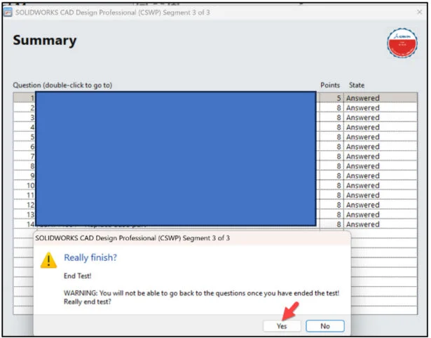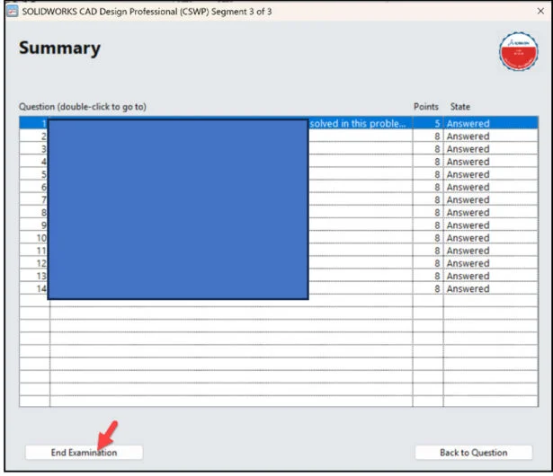 All candidates that pass the three segments of the CSWP certification exam receives an electronic certification, digital badge, business card logo and optional personal listing in the SOLIDWORKS Certification directory.