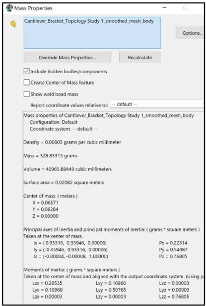 The material is added to the Part FeatureManager. Now you can view the mass properties of the Mesh body.
