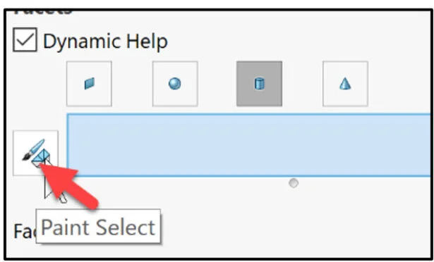 Note: We will not use the Paint Select tool in the lesson. If the faceted model contains facets that do not precisely represent planar, cylindrical, conical or spherical surfaces (commonly derived from scan geometry or sculpting software) it is recommended that you use the Paint Select tool to select many facets from different regions of the group of facets.