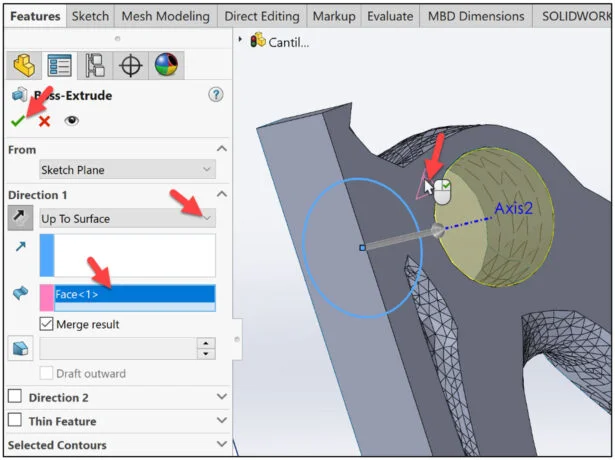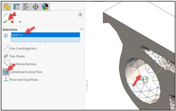 Click Surface-From-Mesh1 as illustrated. Click OK from the Axis PropertyManager.