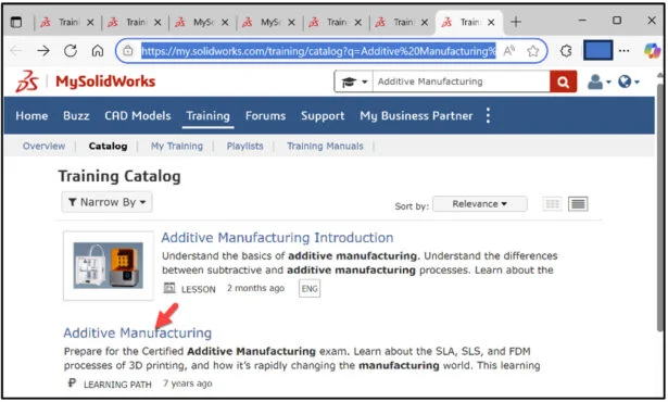 Click the following link: Additive Manufacturing Introduction | MySolidWorks Training