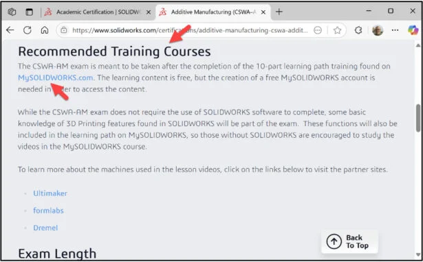 It is highly recommended to complete the 10-part learning path located on the Additive Manufacturing | MySolidWorks Training link before taking the CSWA-AM exam.