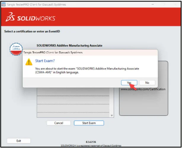 Select SOLIDWORKS Additive Manufacturing Associate (CSWA-AM).