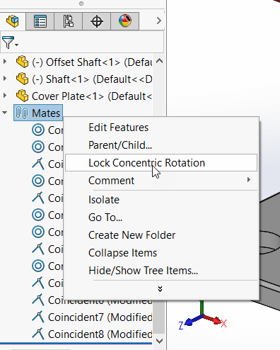 FIGURE 3: SOLIDWORKS Concentric Mate Rotation is Already Locked